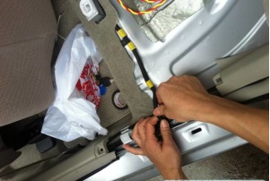 1,打開后座看到一堆線,綠的是油路,黑白是地線.